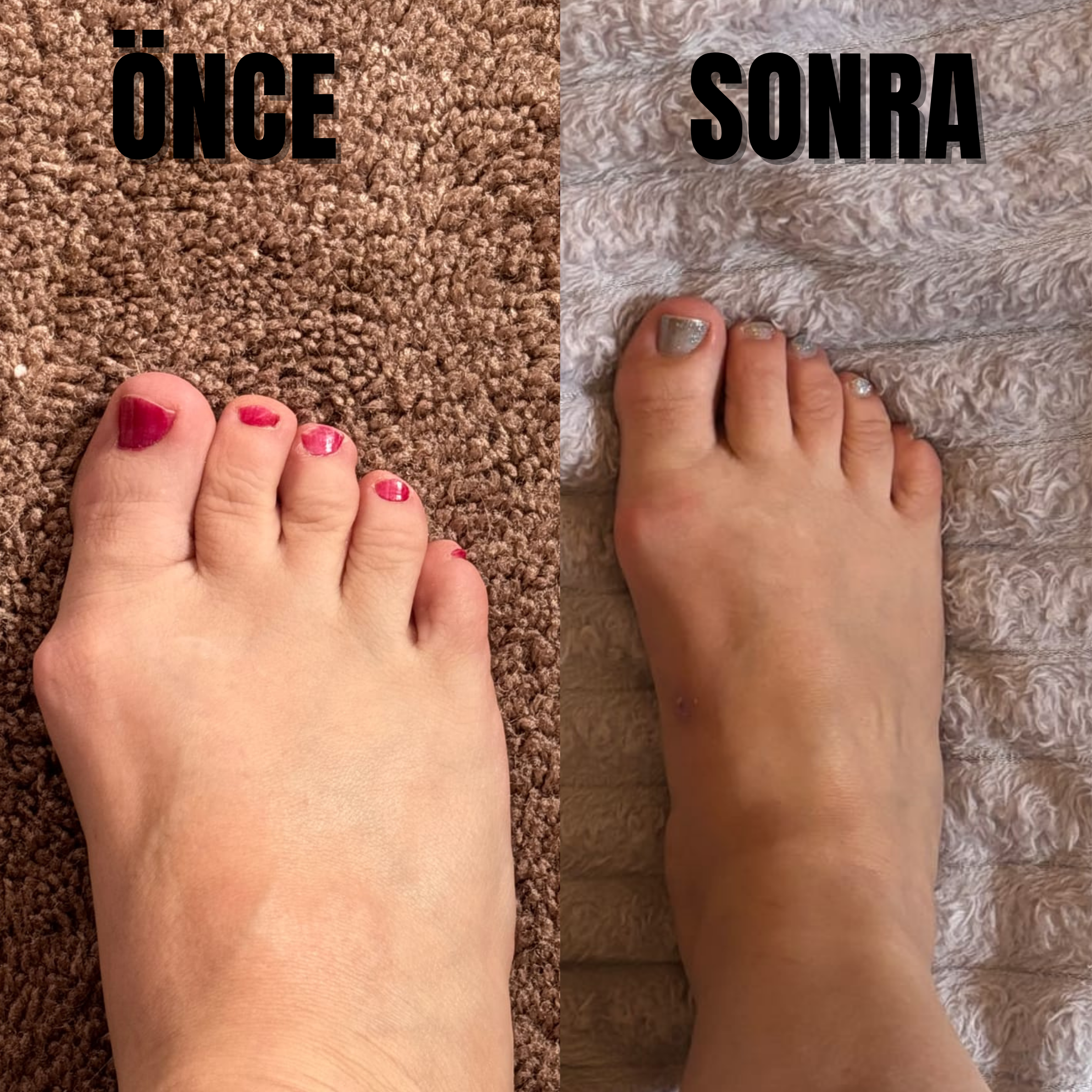 “Tedaviye başlamadan önce ayak başparmağımdaki bunyonun fotoğrafını çekmeyi unuttum ama 4 haftalık kullanım sonrası bunyon belirgin şekilde küçüldü, ağrım azaldı ve parmağım düzelmeye başladı. FOOT MEDİKAL’den gerçekten çok memnunum 😊!”